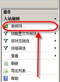 ·增加规则-点击在Windows高级安全防火墙MMC中的新建规则按钮,开始启动新规则的向导。
