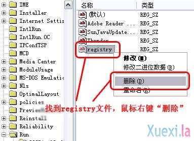 受到修改的注册表项目为: