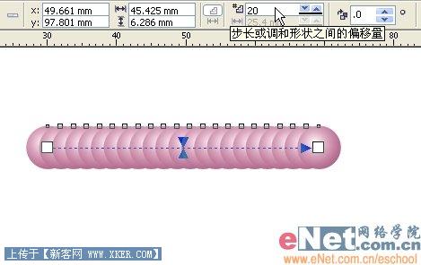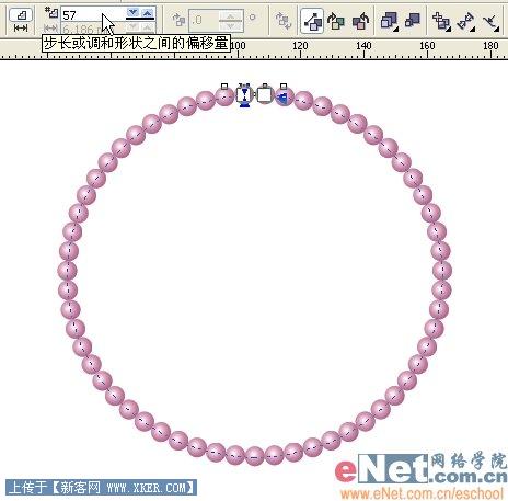 6、在属性栏上设置一个合适的步长值,直到珍珠布满整个圆环。