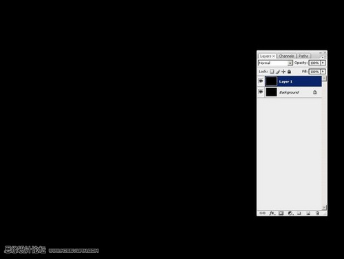1、创建一个新文件,尺寸按自己需要进行设置(建议为1280*960)。将前背景色设置为默认(按D键),使用油漆桶工具(G)将其填充为黑色。复制背景图层一次(Ctrl+J)。