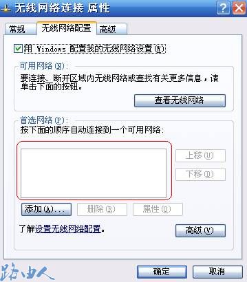 “无线网络连接”-“属性”-“无线网络配置”,将“首选网络”框中内容清空。