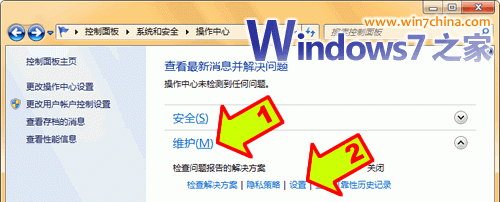 ——接下来,再点击“维护”,在展开的详细设置内容中找到并点击“检查问题报告的解决方案”下方的“设置”,在弹出页面内选择“从不检查解决方案(不推荐)”,点击“确定”就可以禁用错误报告了。