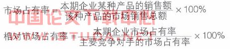 通过市场占有率来调查研究企业的经营战略,可结合销售额或销售量分析。该指标反映企业市场营销方面的业绩,可以根据政府或其它公众组织对市场的总体规模的统计数字进行计算。设立这个指标的目的是促使企业争取更多客户,扩大销售。一般来讲市场份额越大,从客户处获得的利润总额也就越高。公式为: