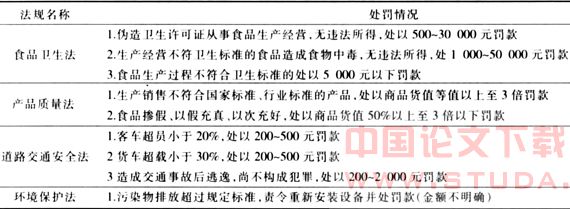 行政处罚效力低,不能够产生足够的震慑力,使得不法之徒打击不尽。比如,非法谋取的利润与被执法人员抓到受到的惩处相差悬殊,那么在这种情况下,违法者就会选择冒险,即使有许多被惩处,但相对无力的惩处力度使得违法现象杜之不绝。从下表中各法规常见问题的处罚标准可以看出相对疲软的处罚力度: